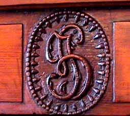 Après un sérieux décapage du manteau de la cheminée les propriétaires des lieux ont maintenant le plaisir d'admirer chaque jour ce magnifique chiffre, lettres entrelacées, de celui qui l'a fait sculpter peu après 1800 : Jean-Baptiste Henry. Sur la maison se trouve en façade le chronogramme AN 10.
