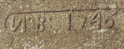 Cette pierre, qui n'est plus actuellement en position de linteau, est placée à droite d'une porte dans le village des Champs Rouaux.