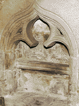 Parmi les pierres tombales qui tapissent le sol près du choeur de l'église, certaines sont datées et mentionnent des noms, illisibles!, ou encore sont ornées de motifs tel un corbeau attribut d'un certain Corbin.