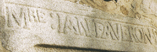 Cette pierre est située à l'intérieur de la maison. Elle est peu lisible, sauf la partie basse où le mot FAVERON se reconnaît facilement